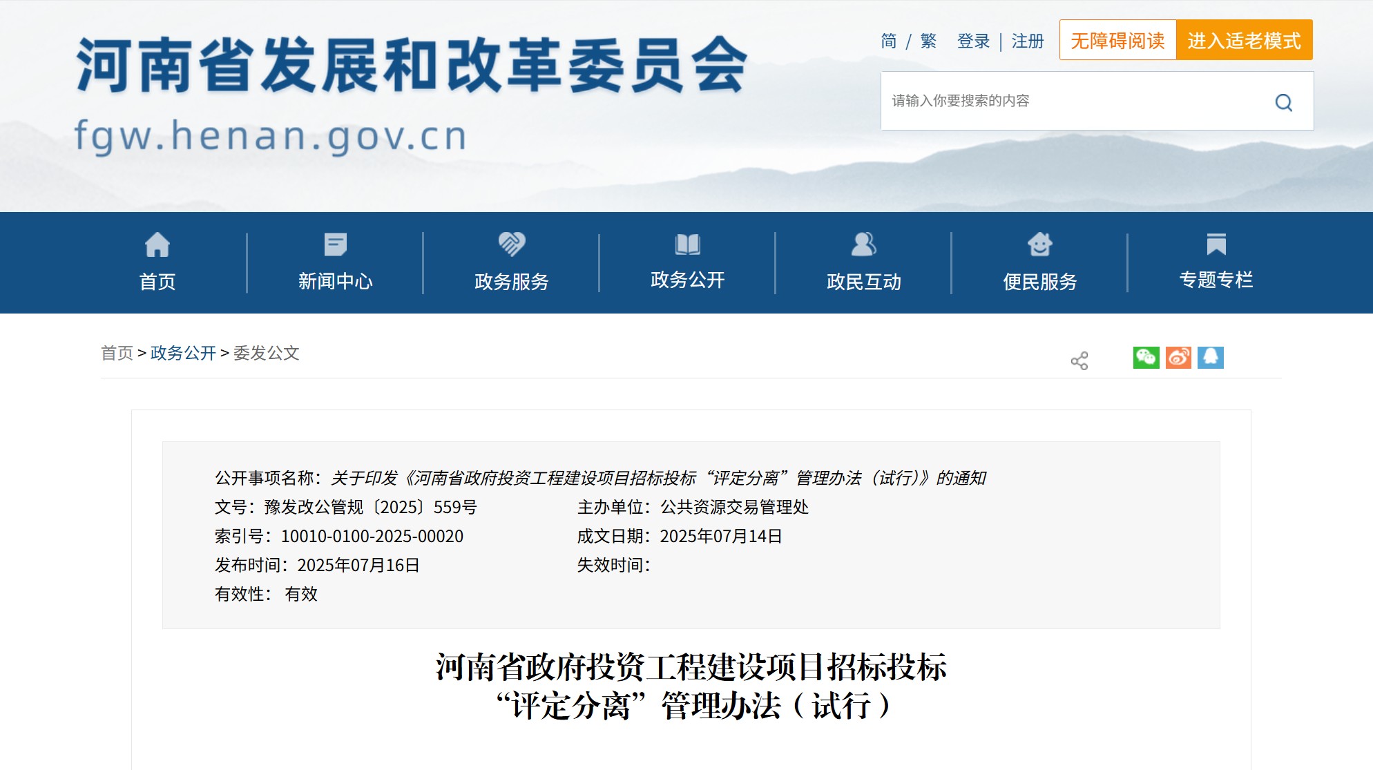 河南省發布《河南省政府投資工程建設項目招標投標“評定分離”管理辦法(試行)》